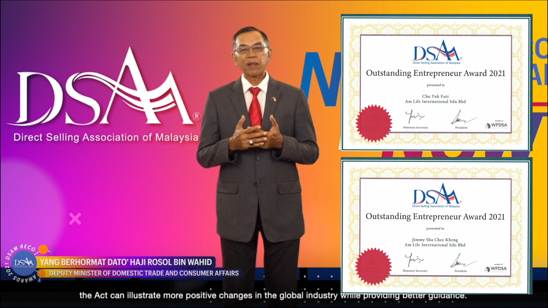 Presented to AmLife in recognition of Outstanding Entrepreneir Award 2021