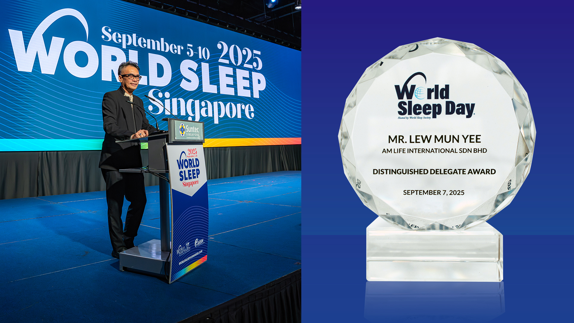 AmLife CEO, Mr. Lew Mun Yee, has been honored with the Distinguished Delegate Award by the World Sleep Society in Singapore in 2025, in recognition of his outstanding contributions to sleep health advocacy and AmLife’s 10 years of dedication to promoting better sleep worldwide.